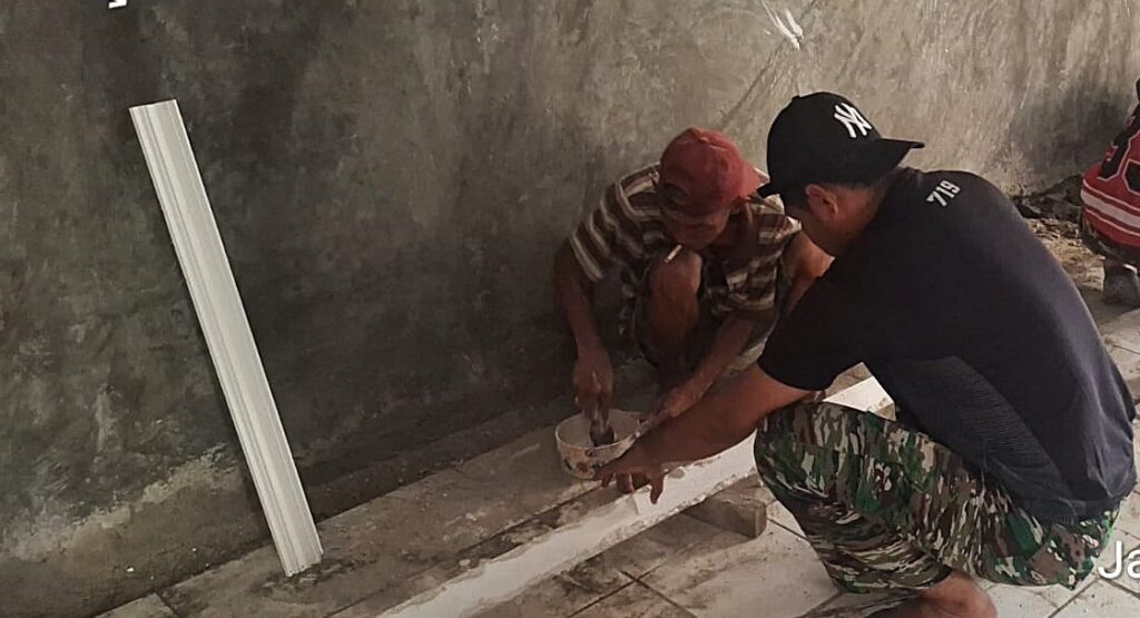 Renovasi ini meliputi perbaikan struktur bangunan agar lebih kokoh, aman, dan layak huni. Personel Satgas TMMD bersama warga setempat bergotong royong menggunakan peralatan pertukangan yang tersedia.