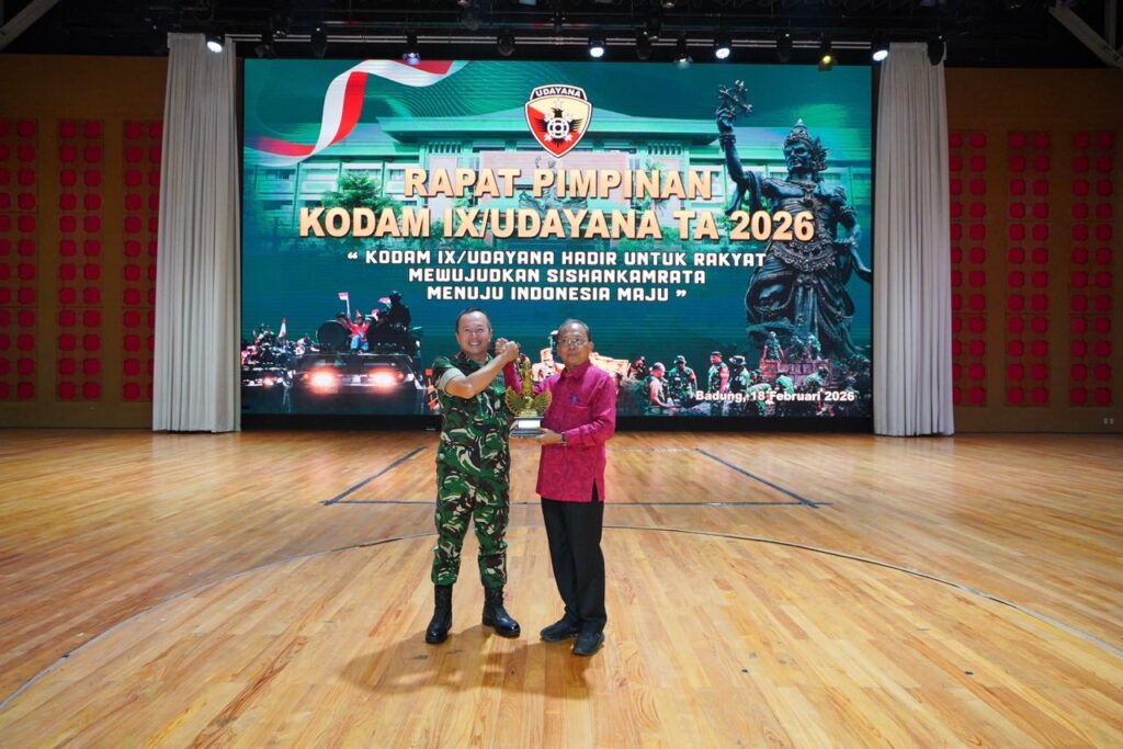 BADUNG (BALI), liputankhususnews.online – Dalam upaya memperkuat sistem pertahanan semesta di wilayah Bali Nusra, Kodam IX/Udayana menyelenggarakan Rapat Pimpinan (Rapim) TA 2026 dengan mengusung tema “Kodam IX/Udayana Hadir Untuk Rakyat Mewujudkan Sishankamrata Menuju Indonesia Maju.” Kegiatan strategis ini berlangsung di Balai Budaya Girinata Mandala, Pusat Pemerintahan (Puspem) Kabupaten Badung, pada Rabu (18/02/26), yang dipimpin langsung oleh Pangdam IX/Udayana Mayjen TNI Piek Budyakto serta diikuti seluruh Pejabat utama Kodam, Komandan Satuan (Dansat), Kepala Badan Pelaksana (Kabalak), dan Babinsa jajaran Kodam IX/Udayana se-Bali.