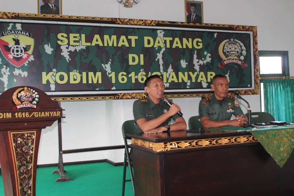 Sementara itu, sambutan Danramil 1616-02/Ubud Mayor Inf I Gede Astawa menyampaikan ucapan selamat datang kepada seluruh peserta dan pendamping di Kodim 1616/Gianyar. Ia juga memaparkan secara singkat tugas pokok Kodim, yaitu melaksanakan pembinaan teritorial dan menjaga kesiapan operasional satuan di wilayah kabupaten/kota guna mendukung tugas pokok TNI Angkatan Darat.