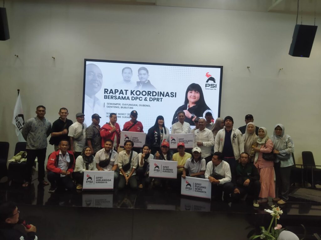 Kegiatan ini menjadi bagian dari upaya konsolidasi internal partai dalam memperkuat Struktur Organisasi hingga tingkat akar rumput. Rapat yang digelar di Hotel KYRIE, Jalan Ciliwung, Kota Surabaya, Jawa Timur, tersebut dihadiri Ketua DPD PSI Surabaya, Grace Evi Ekawati, SE., SH., MHum,. Sekertaris DPD Surabaya,Yoga Pratisabda Widyawasta, ST., , Bendahara DPD Surabaya, Sis Celline, dan bersama jajaran pengurus 5 DPC (Gubeng, Gayungan, Bubutan, Genteng, dan Semampir) serta pengurus ranting dari berbagai 5 kecamatan yang diundang.