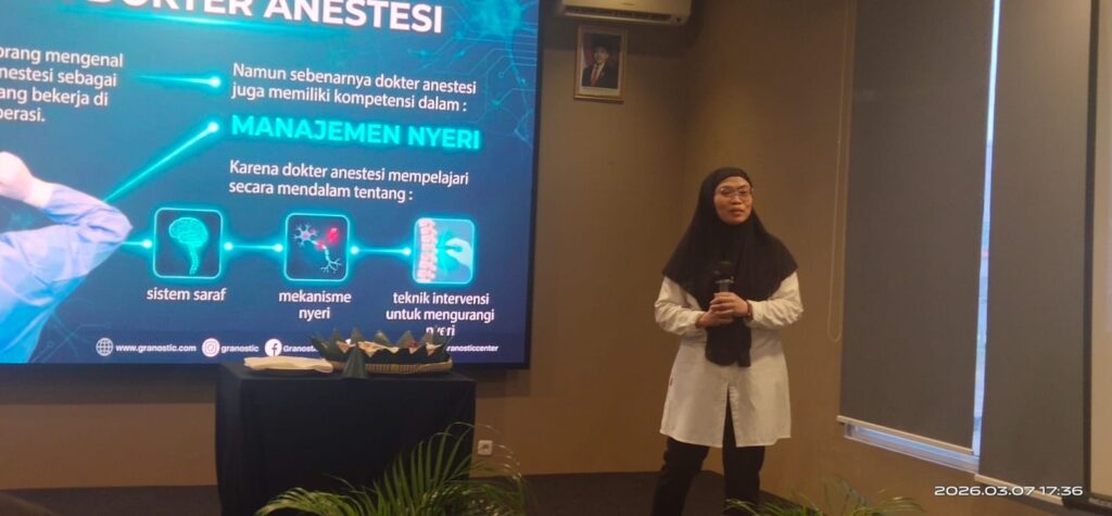 Setelah sesi pemaparan dilanjut testimony oleh pasien Rika yang sudah hamper 30 tahun menderita nyeri, dan sudah beberapa Rumah Sakit, obat dan baik berobat di Dalam Negri serta Luar Negri tidak memenuhi hasil, di keputus asaannya beliau pada 07 Januari 2026 diperkenalkan oleh sesorang teman dengan Klinik Granostic Pain Clinic, beliau tanpa piker panjang berkonsultasi dengan Dr. Ratri Dwi Indriani, SpAn-Ti., FIP., FIPP, dan tepat tanggal 13 Januari 2026 dilaksanakan tindakan dilakukan selama kurang lebih hanya 1 jam, dan akhirnya membuahi hasil, penyakit yang selama ini diderita selama 30 tahun hilang.